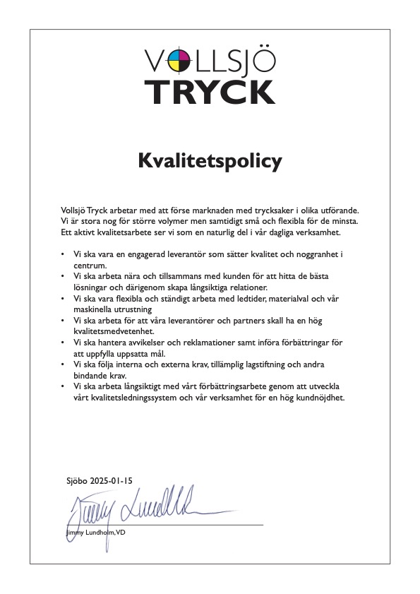 Sedan 2016 är vi ISO certifierade i både 9001 samt 14001. Ett löpande ISO arbete utvecklar oss som företag och ser till att vi blir bättre.